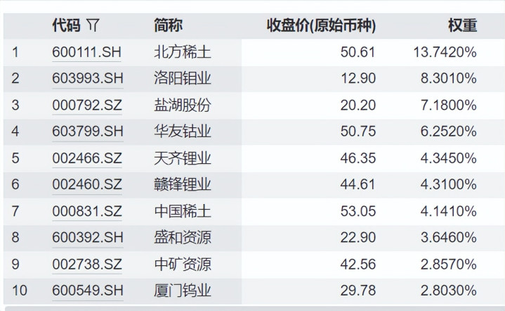 从前10大重仓股我们能够看得更清楚:稀土和锂矿占比较高。这也是该指数的重要特点。或将明显受益于人工智能产业的发展以及新能源产业的发展。