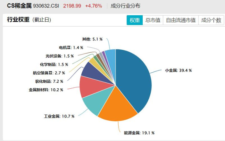 按照申万二级行业分类,中证稀有金属主题指数中小金属、能源金属占比较高。
